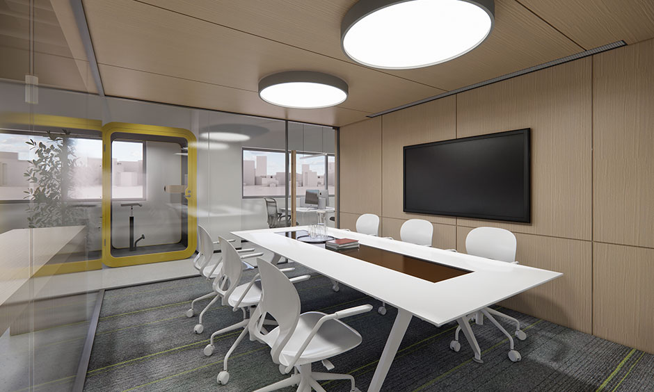 我们的设计从时驾科技的汽车研发属性出发,结合场所的功能性,整个概念的关键词是科技感、人文感。我们尽量去除多余的装饰,利用功能本身所需的材料来构建美感和意义。在配色方面,我们将时驾科技标志性的绿色以巧妙的方式融合,让空间气质更符合客户的商业行业特点